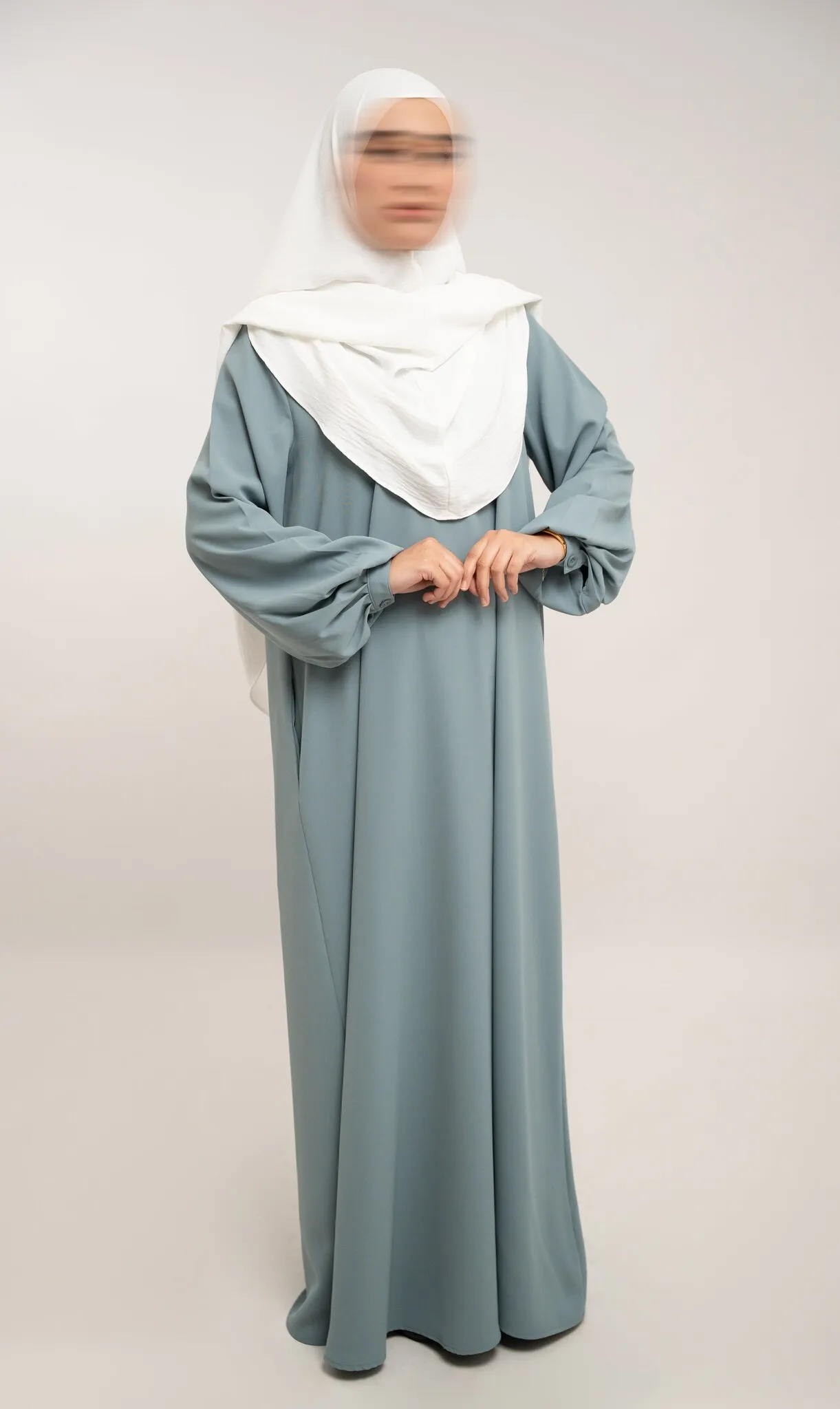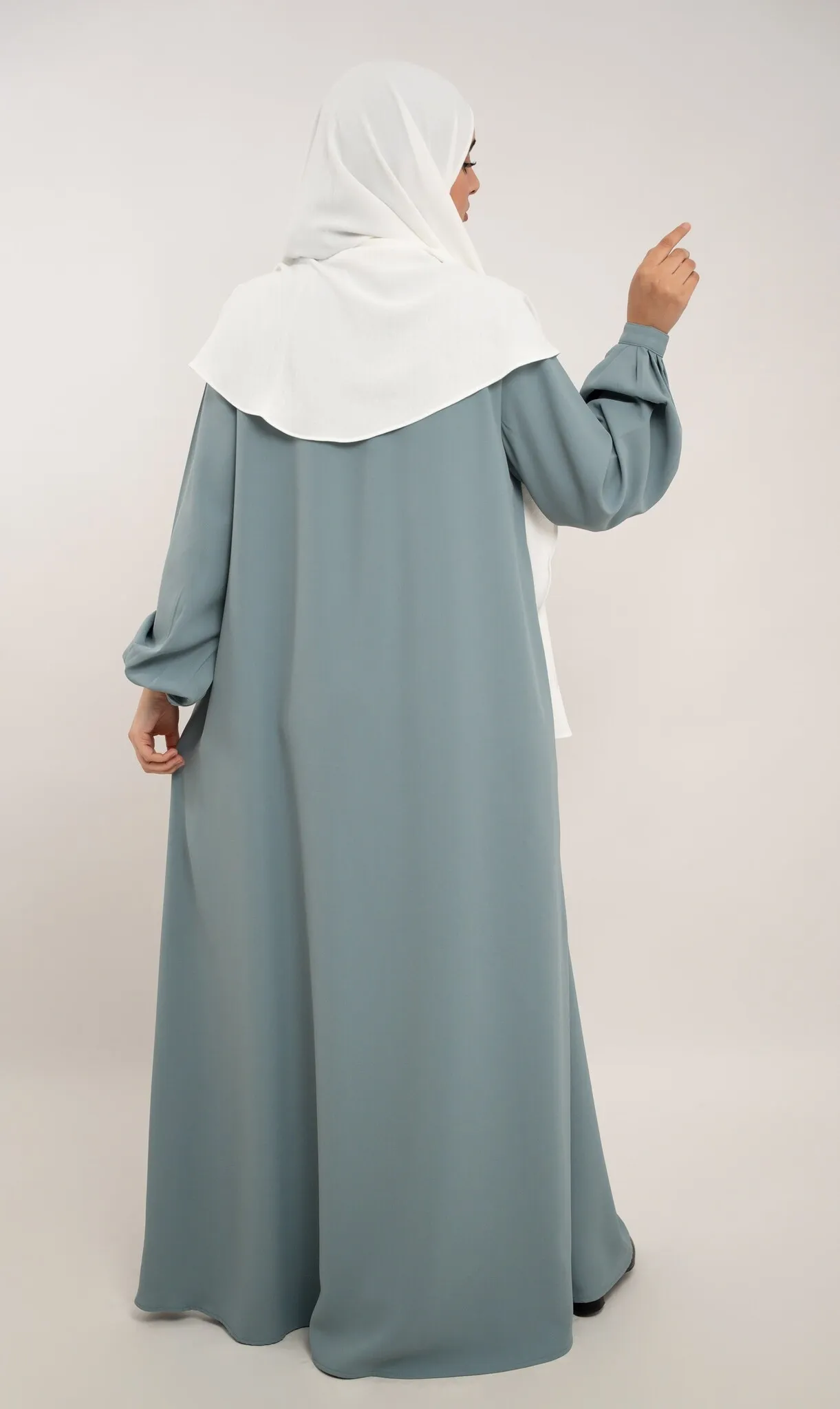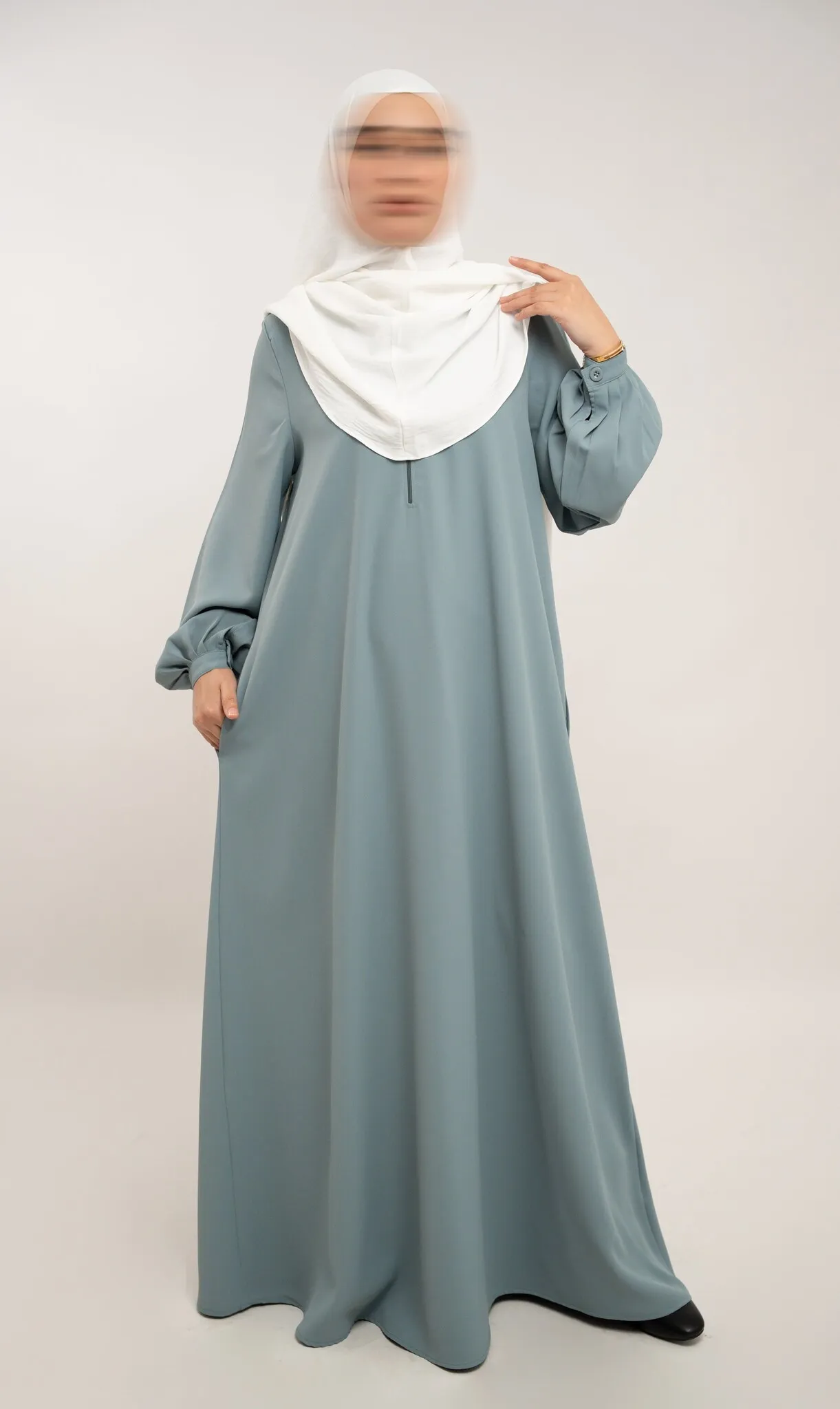 Deze abaya is ontworpen met oog voor comfort en functionaliteit. De rits op de borst maakt het model geschikt voor borstvoeding. De licht gepofte balloonmouwen met knoopsluiting bij de polsen zorgen voor een elegante uitstraling, terwijl de zakken aan beide zijden extra gebruiksgemak bieden.