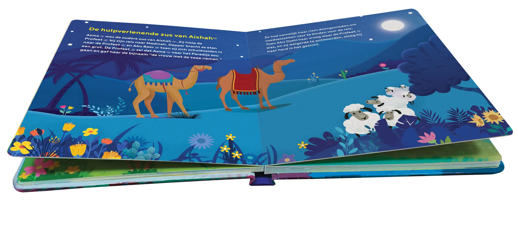Aishah Bint Abu Bakr – Moeders van de Gelovigen is een prachtig geïllustreerd islamitisch kinderboek dat jonge lezers kennis laat maken met het inspirerende leven van een van de meest invloedrijke vrouwen in de islamitische geschiedenis: Aishah, de vrouw van de Profeet Mohammed.
