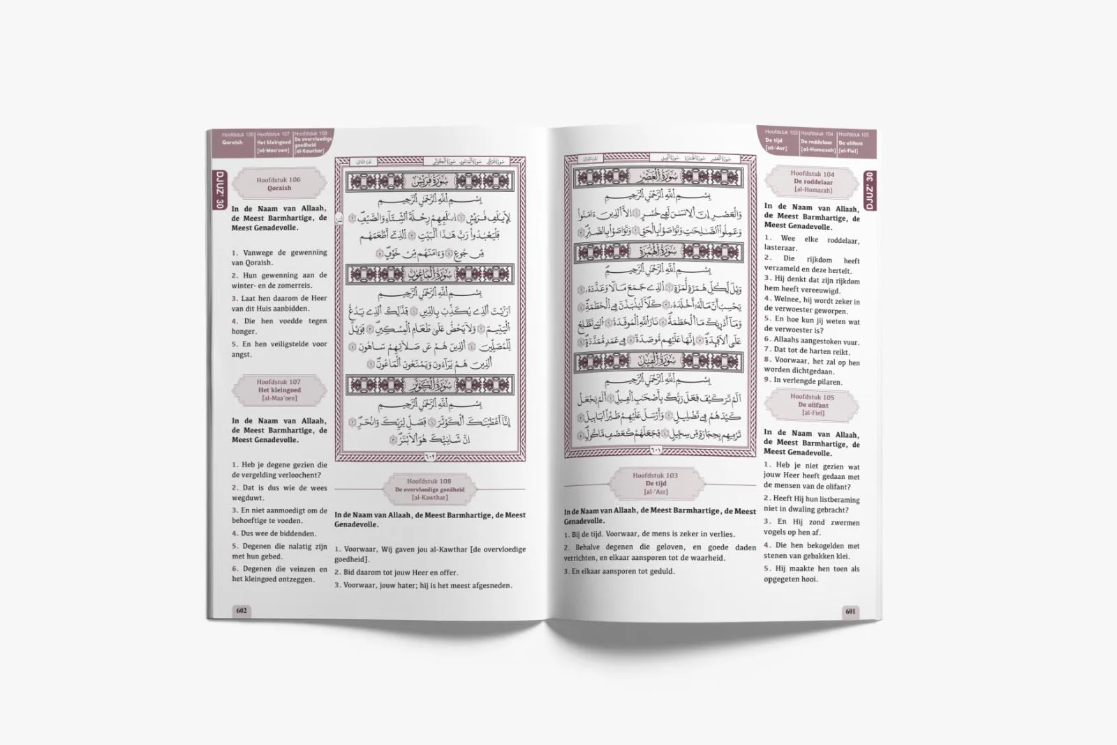 - Uitvoering: Arabisch (Warsh) met Nederlandse vertaling