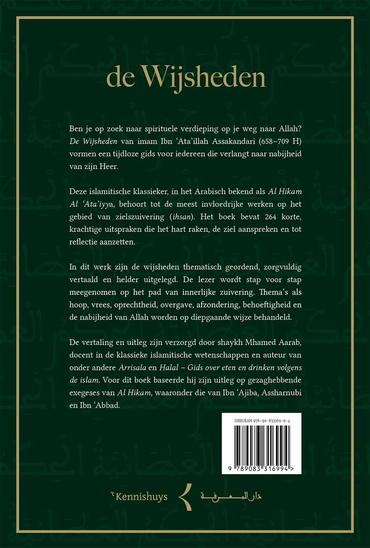 Deze islamitische klassieker, in het Arabisch bekend als Al Hikam Al ‘Ata’iyya, behoort tot de meest invloedrijke werken op het gebied van zielszuivering (ihsan). Het boek bevat 264 korte, krachtige uitspraken die het hart raken, de ziel aanspreken en tot reflectie aanzetten.