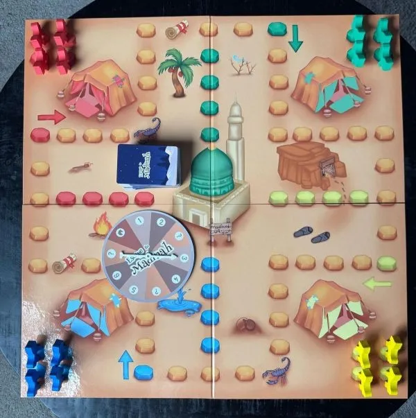 Degene die als eerste alle vier paarden veilig in Madinah brengt, wint het spel!