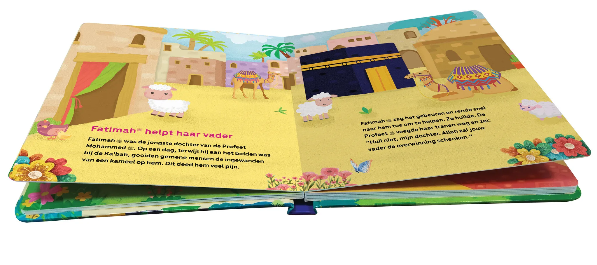 "Fatimah, de Prinses van het Paradijs" is een hoogwaardig kartonboek met foam hardcover, ontworpen voor kinderen tot circa 7 jaar. Het boek telt 22 rijk geïllustreerde pagina’s en is afkomstig van de gerenommeerde islamitische uitgeverij Goodword.