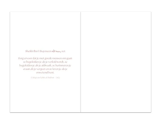 De "Friendship in Dunya and Aghira In Shaa Allah" wenskaart is een prachtig gebaar dat mensen samenbrengt. De voorkant bevat de tekst "Friendship in Dunya and Aghira In Shaa Allah" als smeekbede, en de binnenkant toont een inspirerend citaat van Sheikh Ibn Uthaymeen رحمه الله over het belang van goede gezelschap. Met afmetingen van 16,5 x 11,5 cm is dit kaartje het perfecte cadeau om vrienden te inspireren.