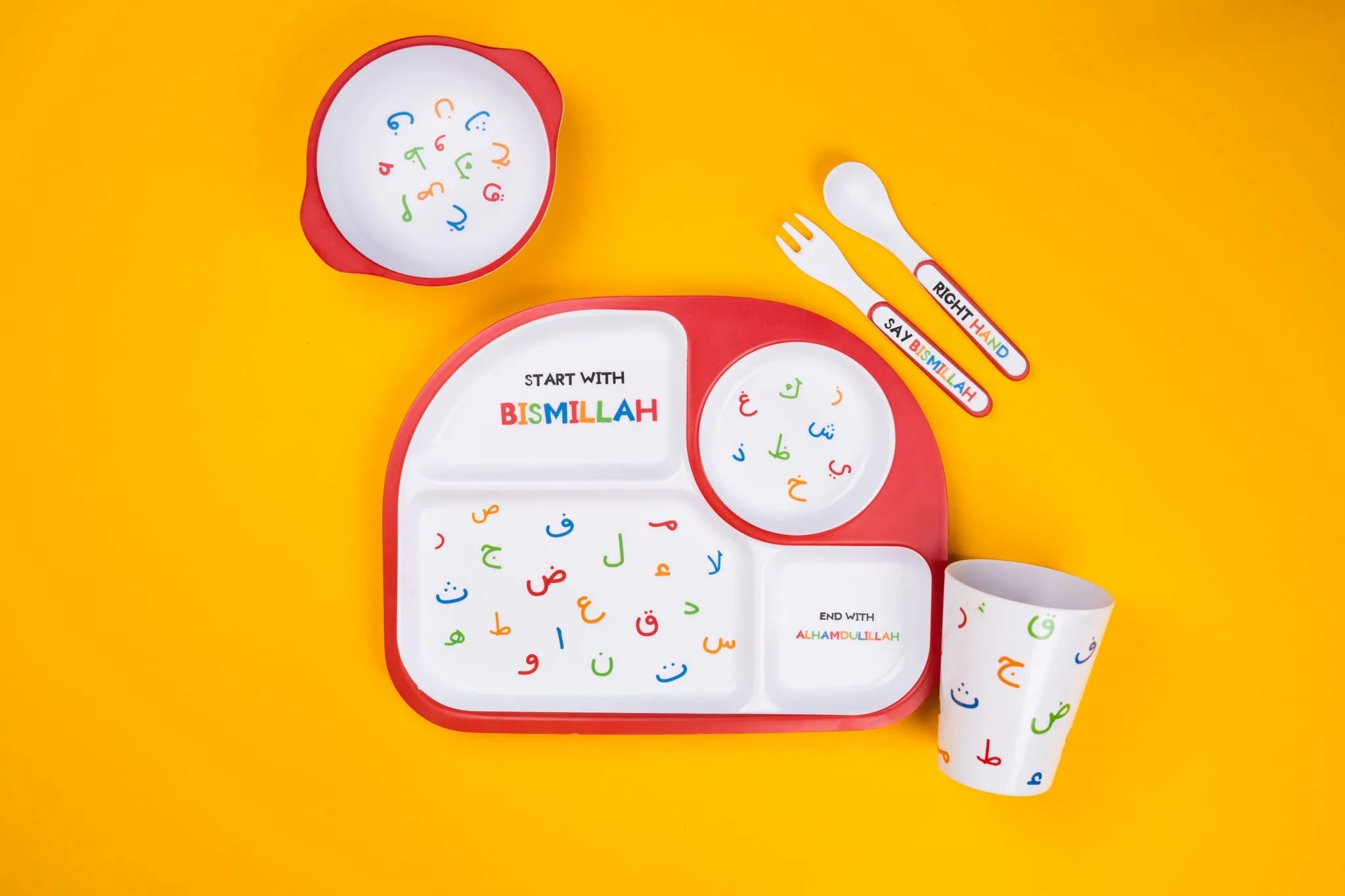 Islamitisch Kinder Servies – 5-delige Arabisch Alfabet Set