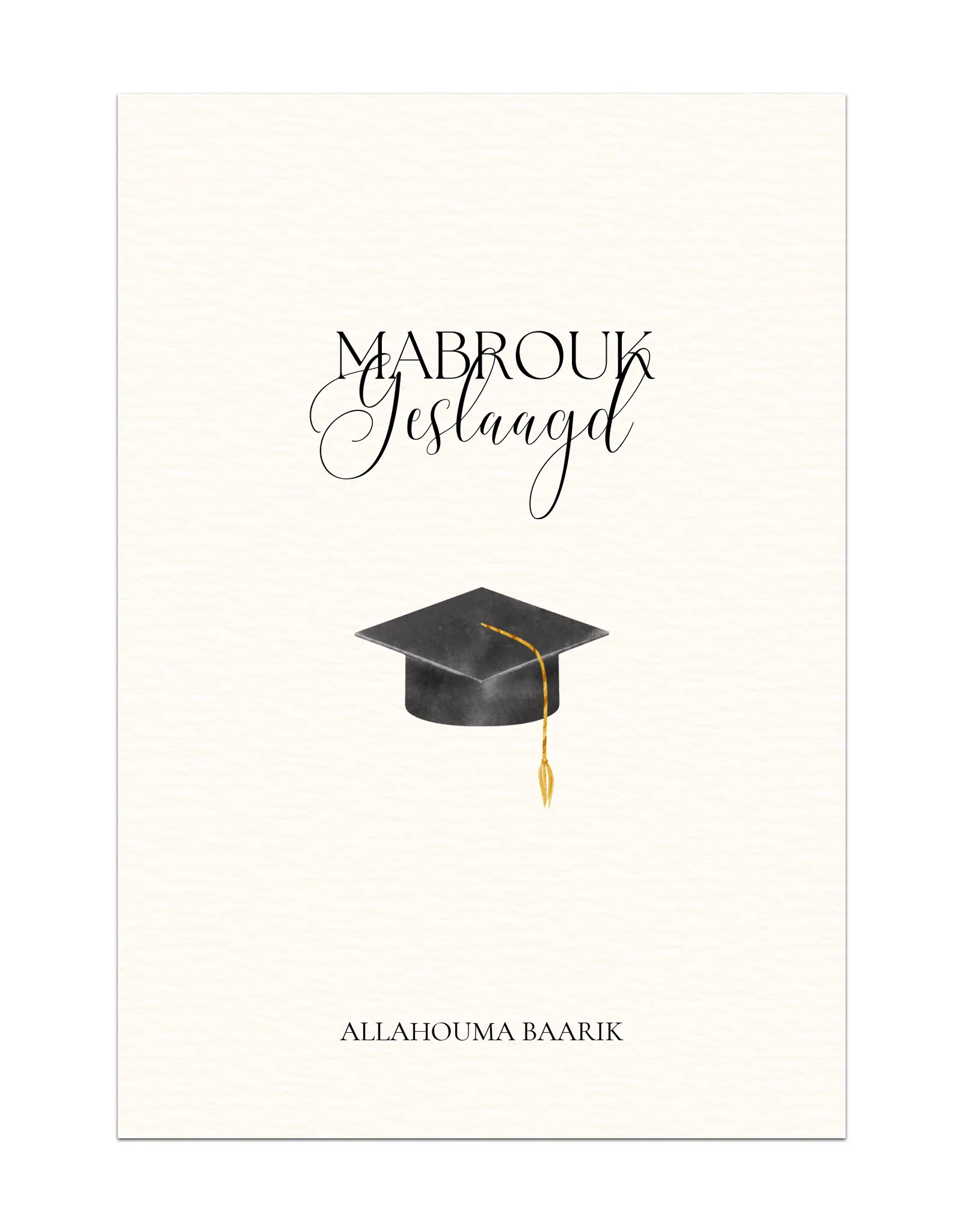 Tekst voorkant: Mabrouk geslaagd.