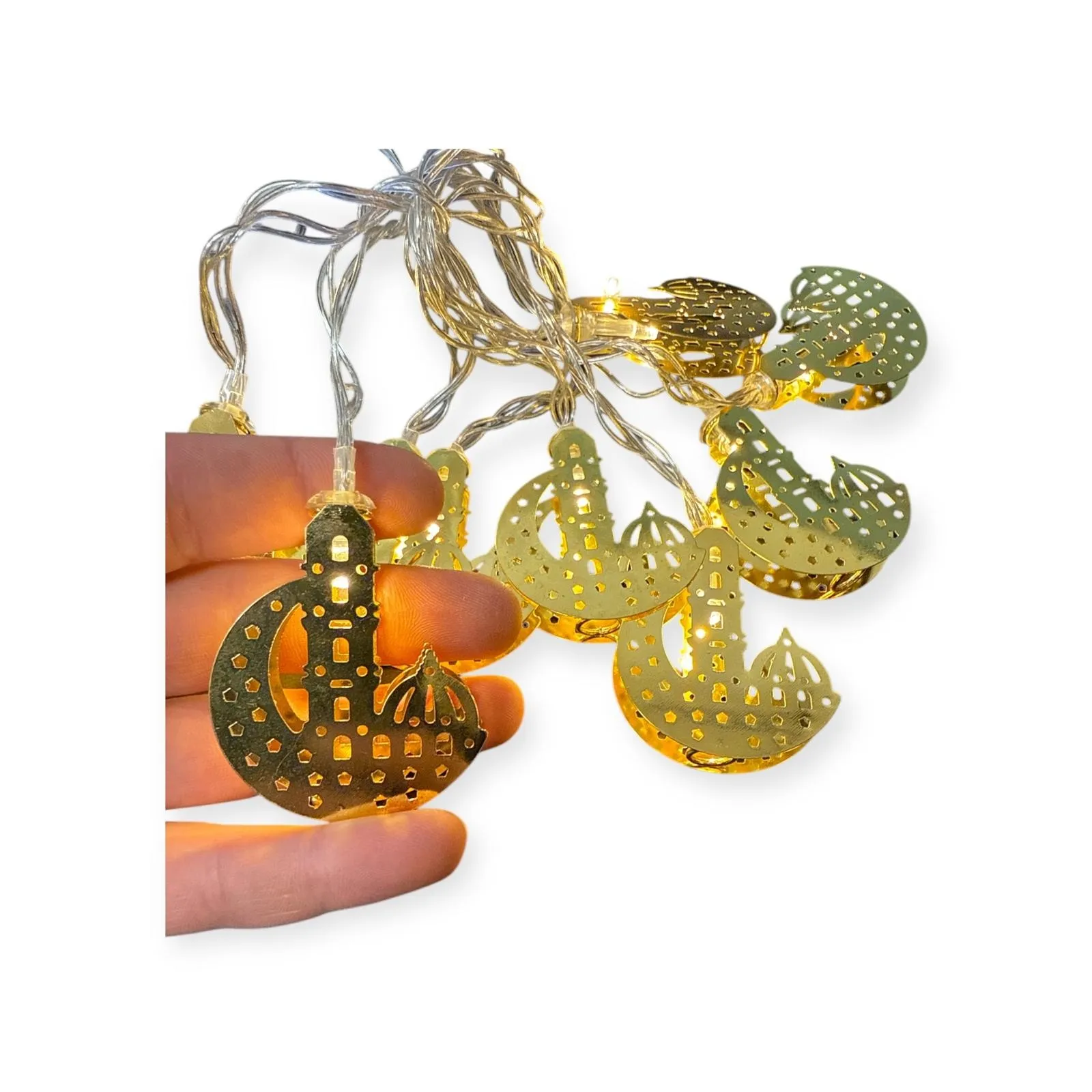 Ramadan Sfeerverlichting Halve Maan met Koepel & Minaret | 2 Meter | Mini-Lampjes | Werkt op 2 AA Batterijen