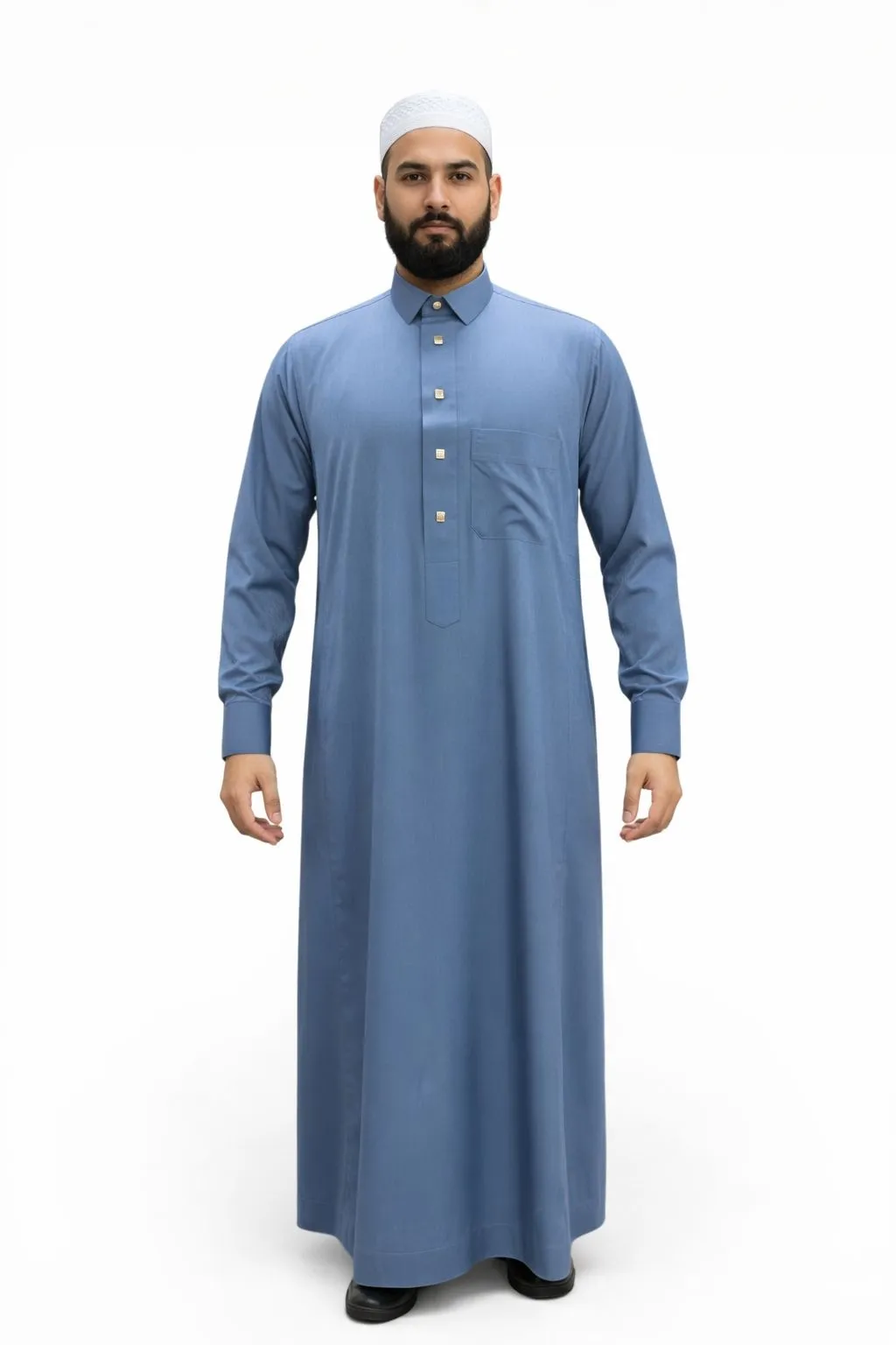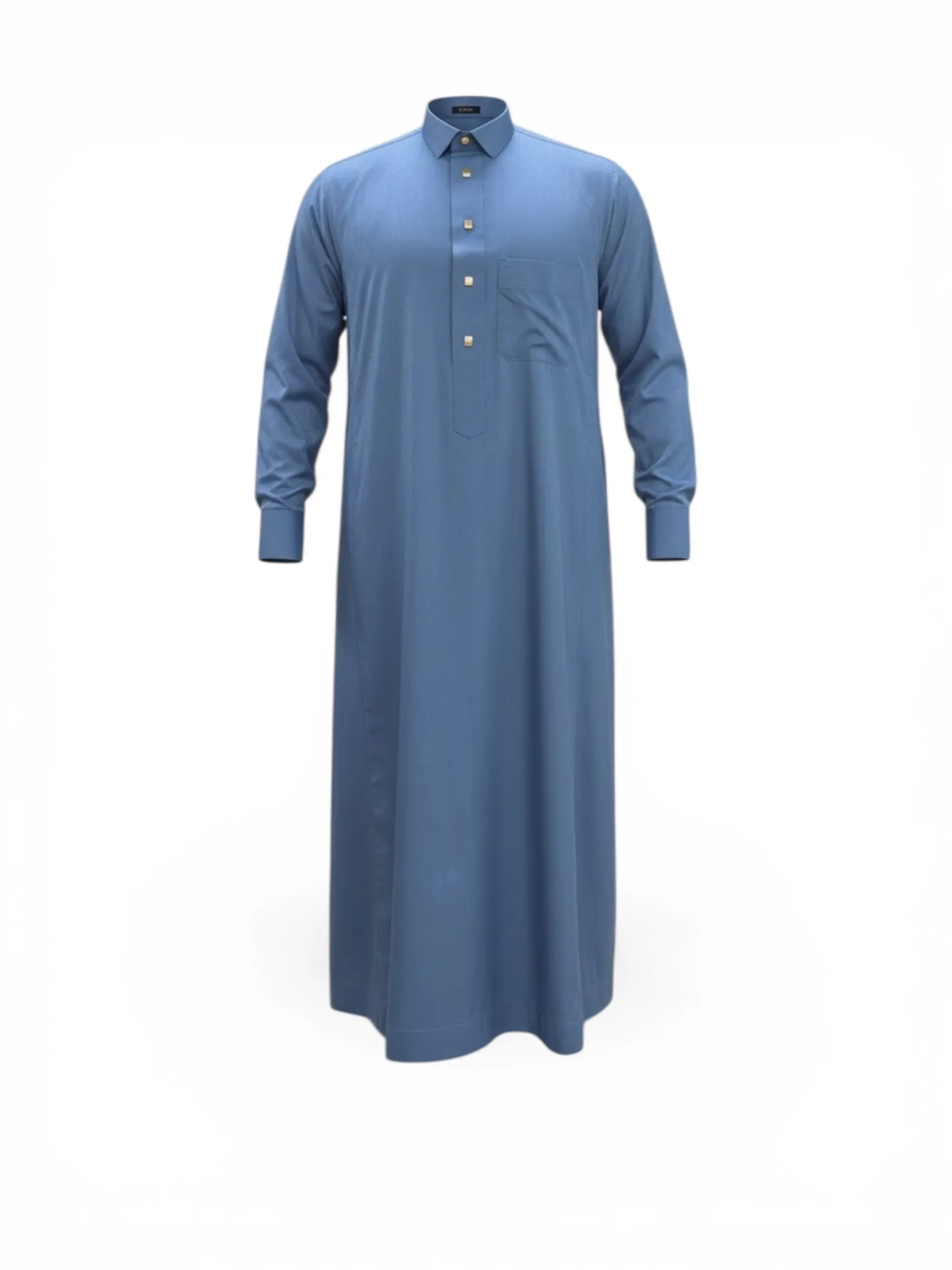 Dankzij de goudkleurige drukknopen krijgt de qamis een luxe uitstraling, terwijl de comfortabele pasvorm ervoor zorgt dat hij ook ideaal is voor dagelijks gebruik.