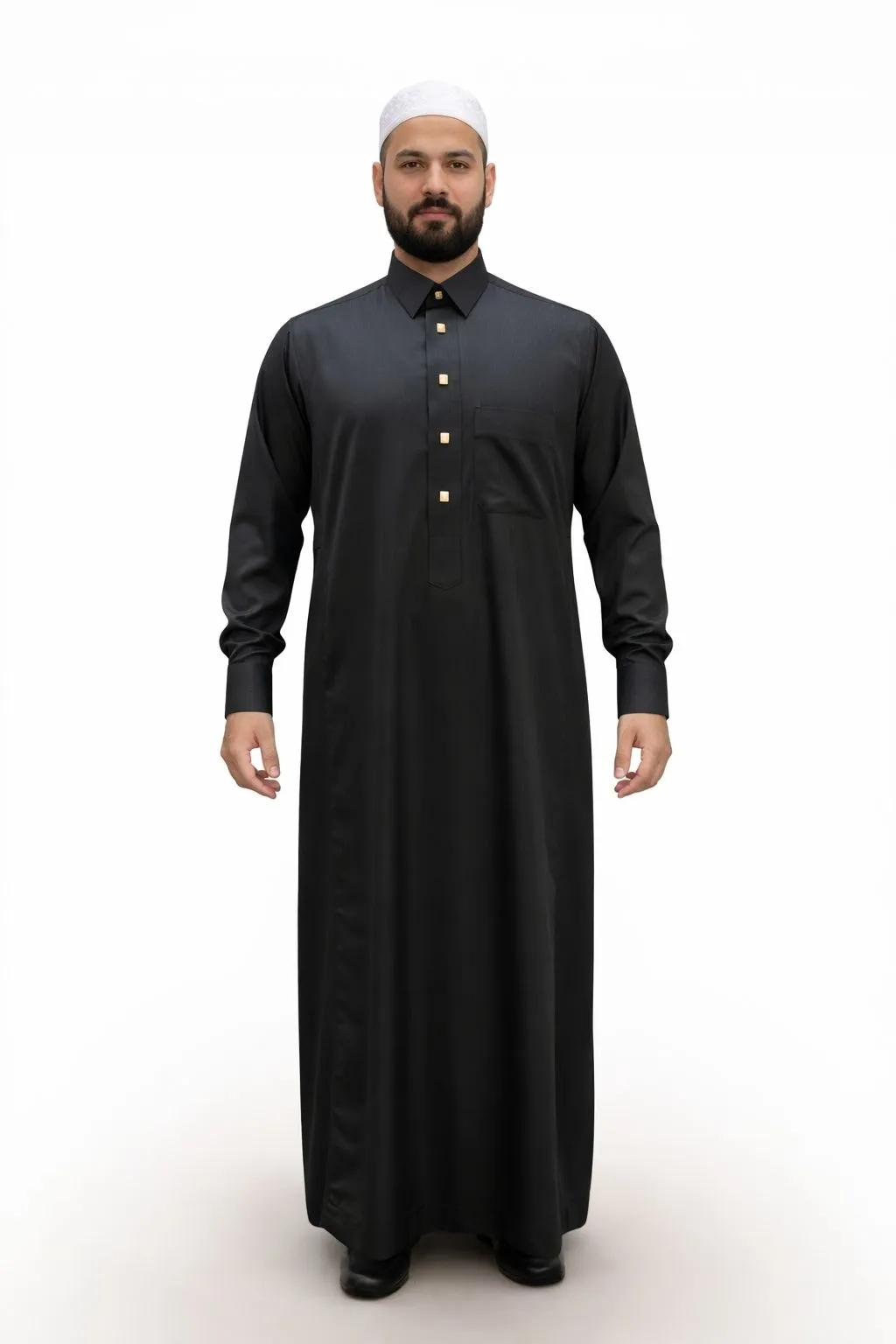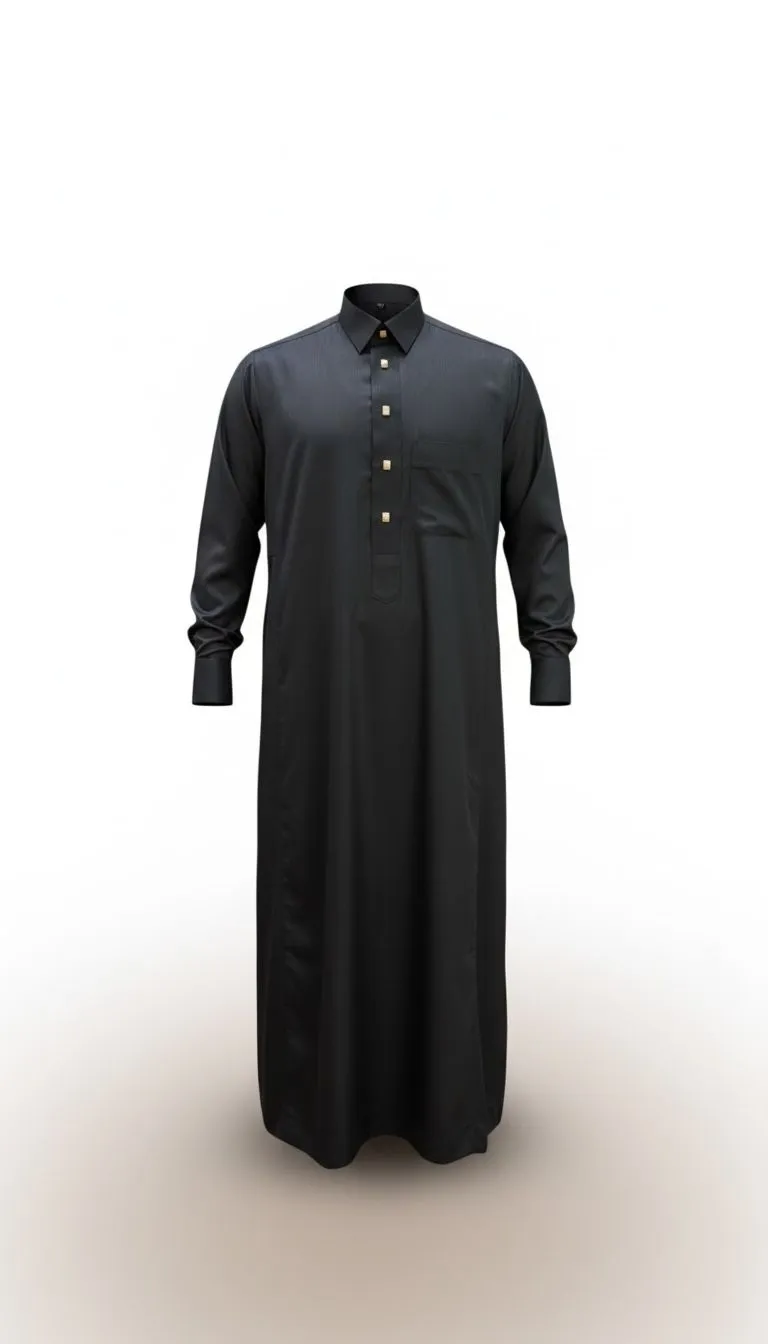 Dankzij de goudkleurige drukknopen krijgt de qamis een luxe uitstraling, terwijl de comfortabele pasvorm ervoor zorgt dat hij ook ideaal is voor dagelijks gebruik.