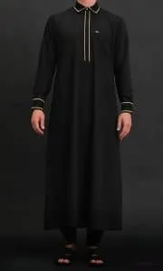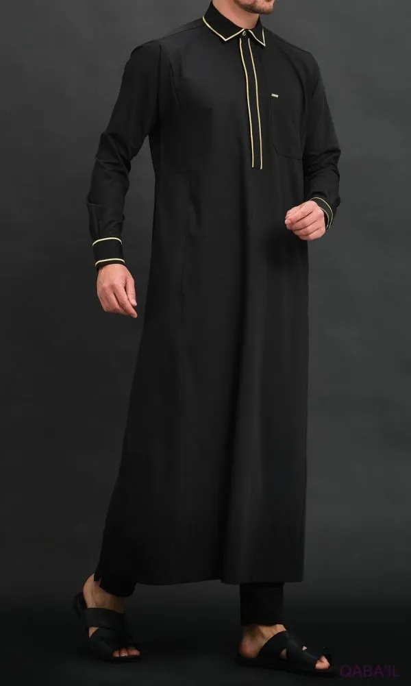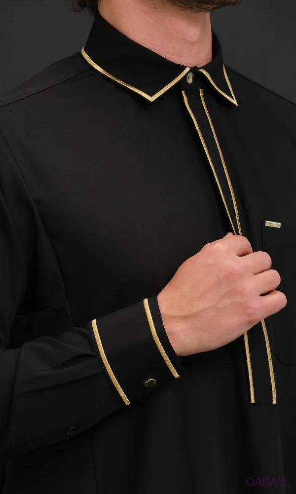 Zwarte Qamis met Gouden Details – Sultan Model Qaba'il